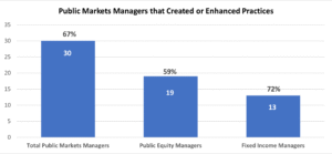 A substantial majority, or 67%, of the NYCERS’s public markets managers created new policies or practices or enhanced existing policies or practices to support decarbonization of their portfolio companies and assets as a result of the NYCERS’s net zero expectations.