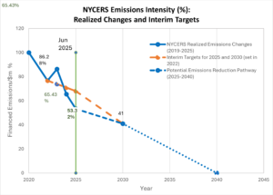 In 2023, NYCERS adopted an ambitious goal to reach net zero by 2040 (an elimination of financed greenhouse gas emissions throughout their investment portfolio) and laid out clear strategies for a just transition to a low-carbon economy aimed at – reducing our carbon footprint in direct response to the climate crisis. I am pleased to announce that the System has made meaningful progress on this goal, building on their previous climate action including a divestment from publicly traded fossil fuel reserves. This report provides an update as of the end of Fiscal Year 2025 for the System’s efforts to reach this goal.