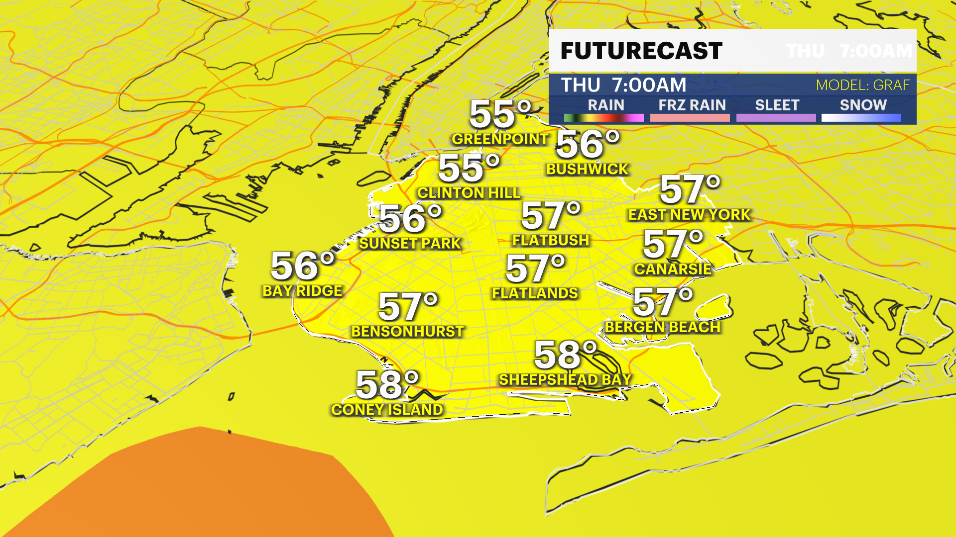 Thursday: Wind-driven rain and cool. Highs near 60. Lows near 50.