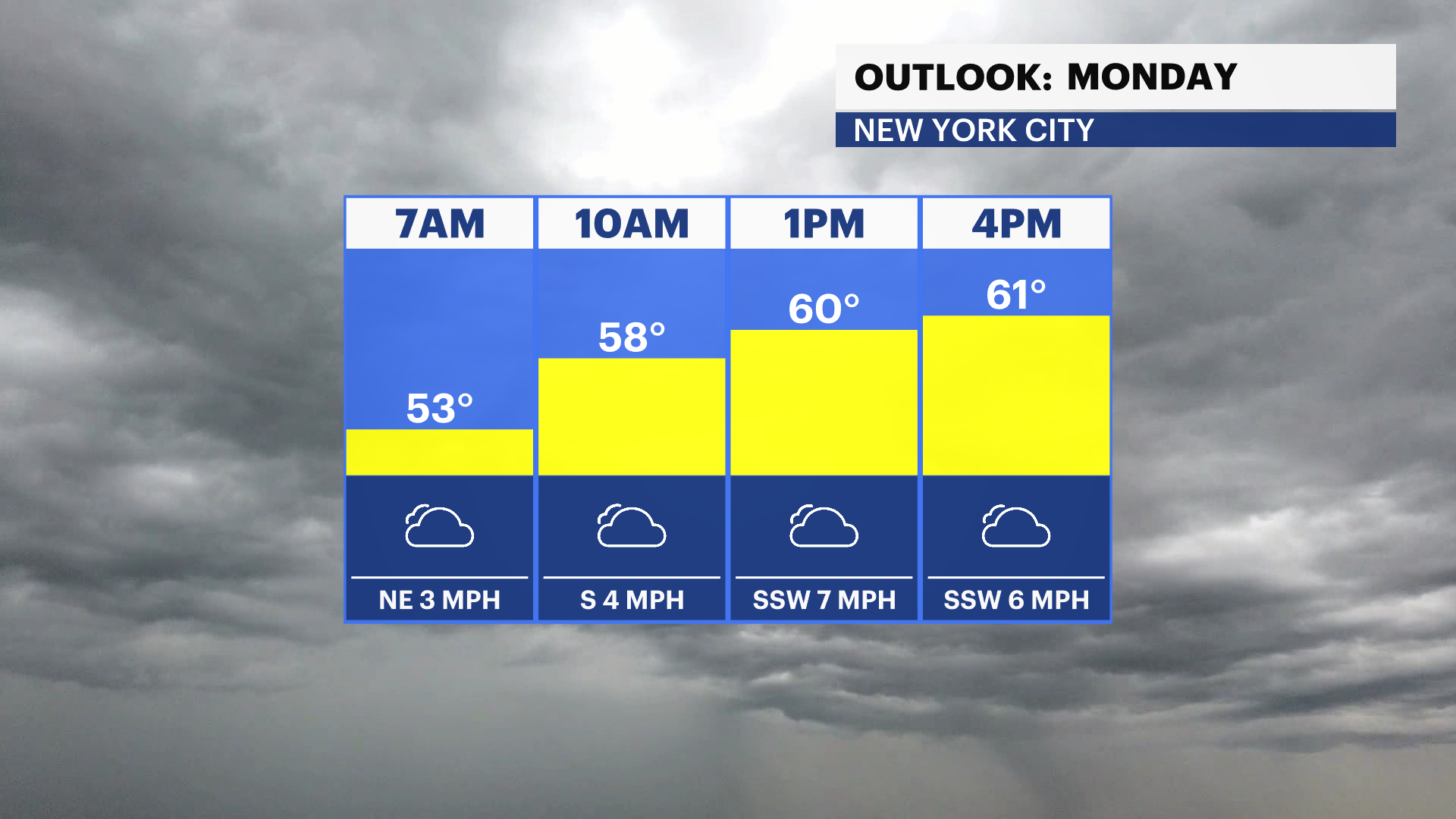 It’s a cool and mostly cloudy start to the day with wake-up temperatures in the low-50s.