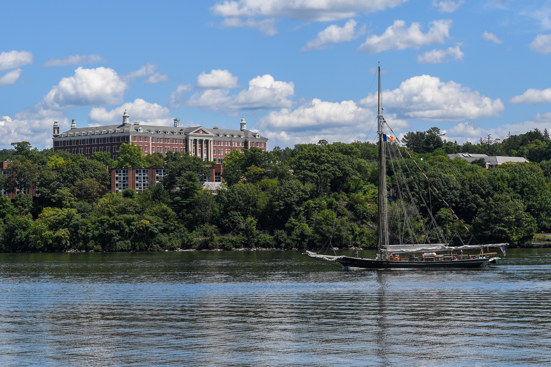 View of Culinary Institute of America from Hudson River in Hyde Park