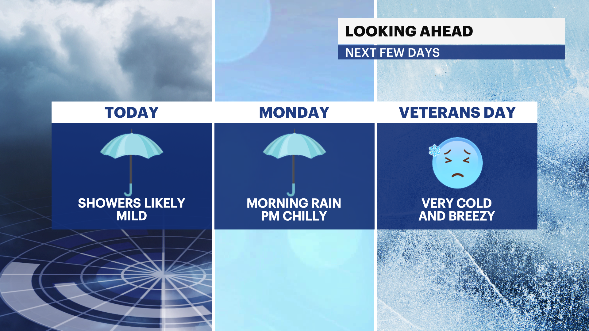 Cold and windy for Veterans Day. Morning lows near 30 but wind chill values will be in the 20s. Afternoon highs in the mid 40s. Winds 15-25 mph, occasionally gusting over 35 mph.