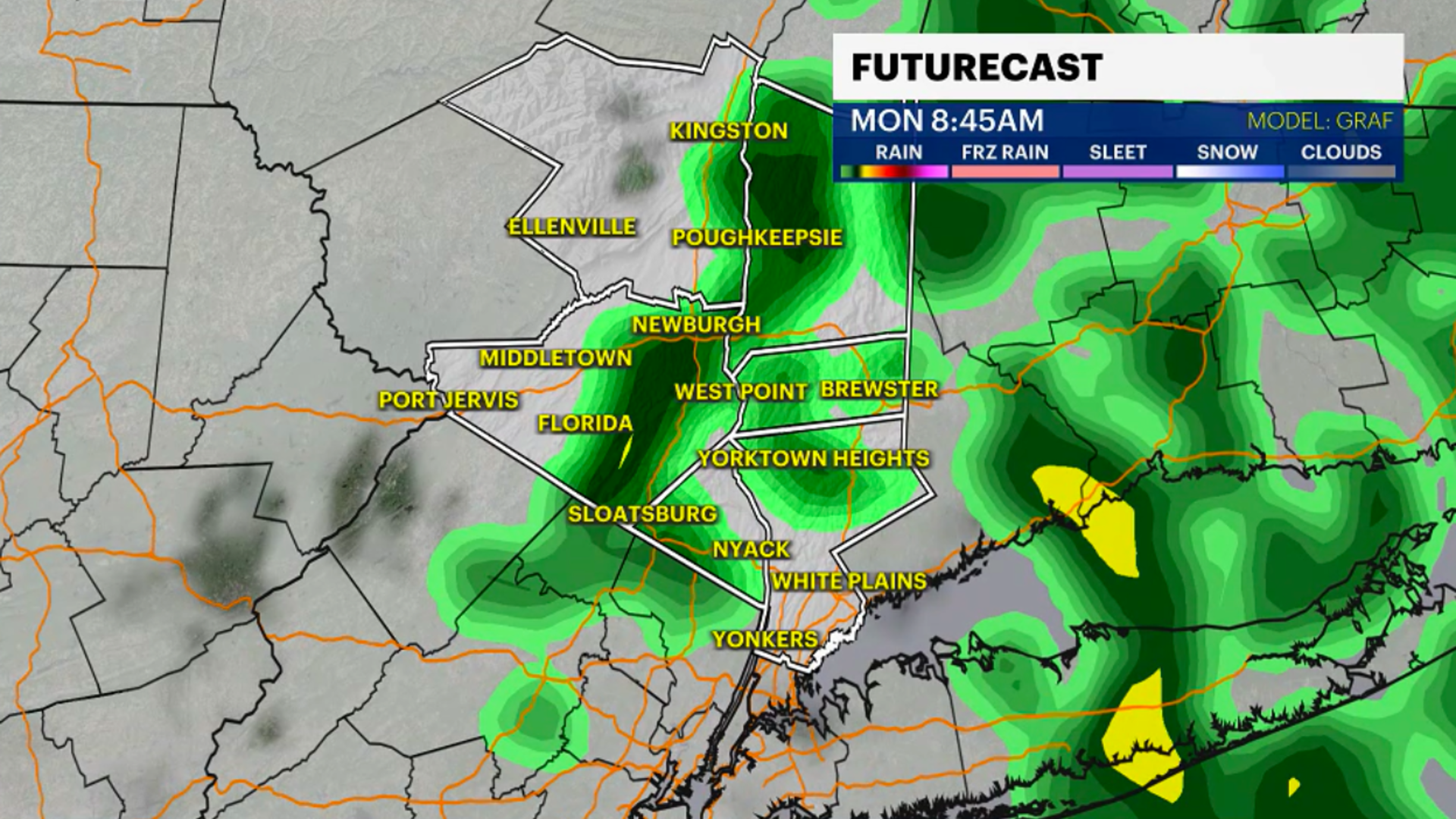 OVERNIGHT: Cloudy with lingering showers. Foggy into early Monday morning. Lows near 30.