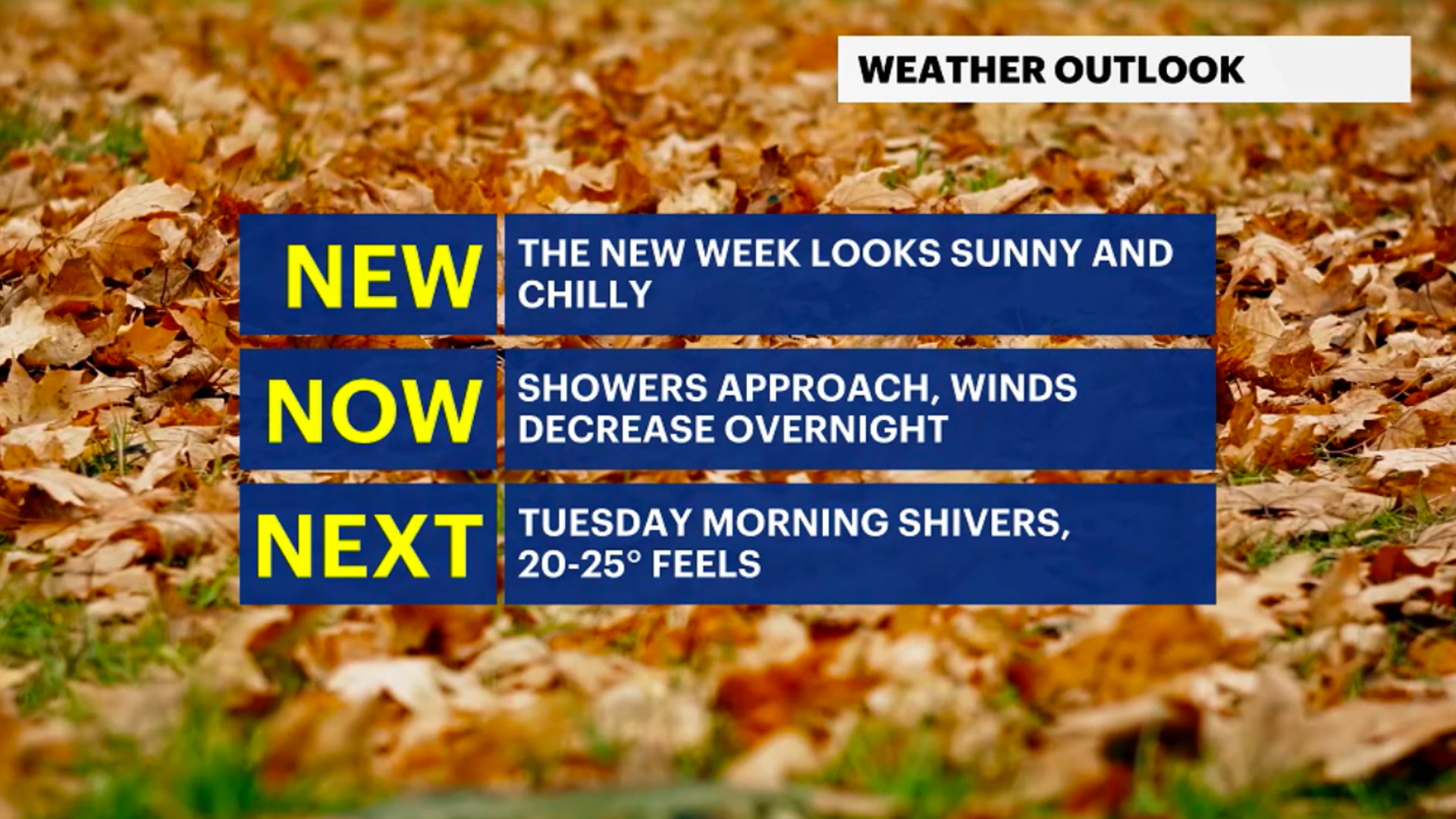 Mostly sunny conditions follow Tuesday’s chill into the weekend.