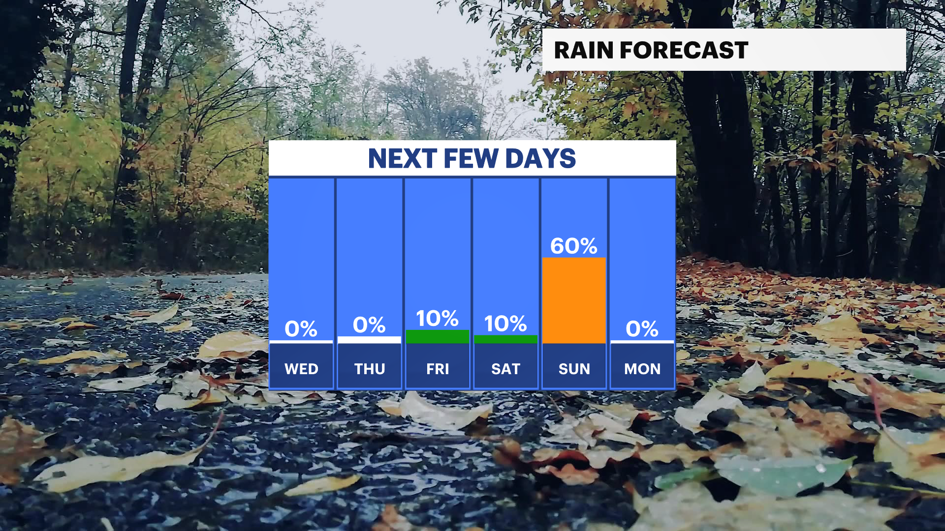 SUNDAY: Rain chances return! Highs in the low 50s, lows in the low 40s.