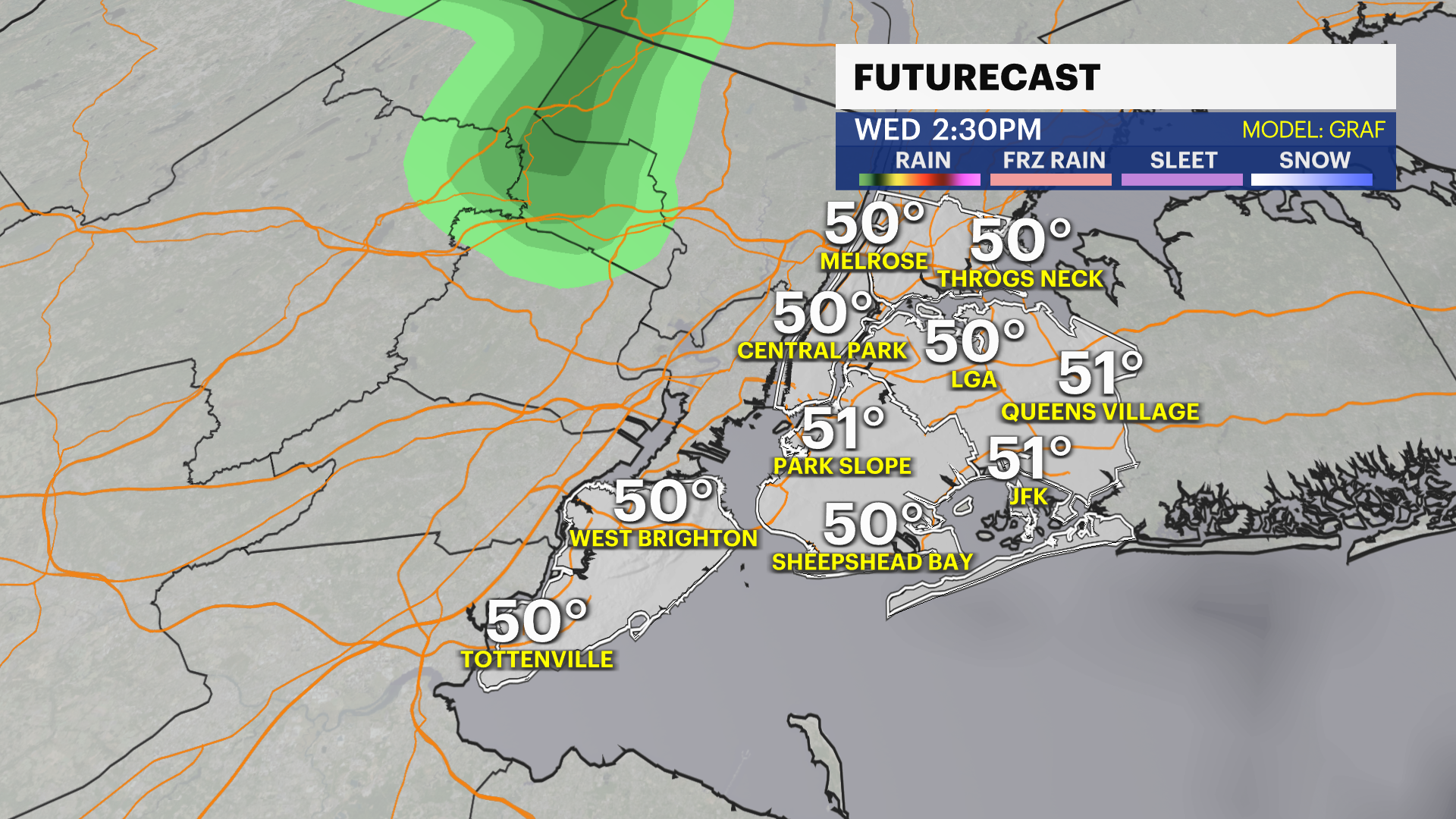 THURSDAY: Bright and breezy. Highs in the low 50s and lows in the higher 30s.