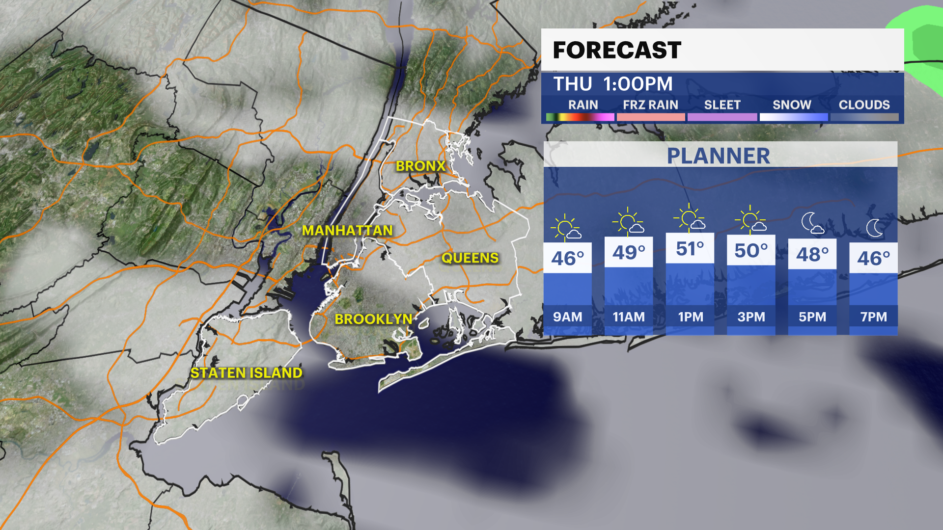 Thursday: Brighter, cool and breezy. Highs near 53. Lows near 38.