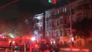 The FDNY says the fire started just before 7:30 p.m. in an apartment building at 1030 Willmohr St. between East 93rd and East 92nd streets.