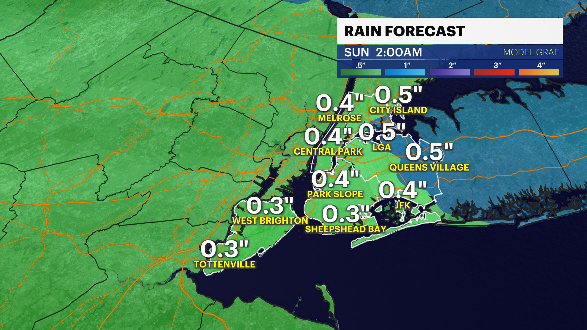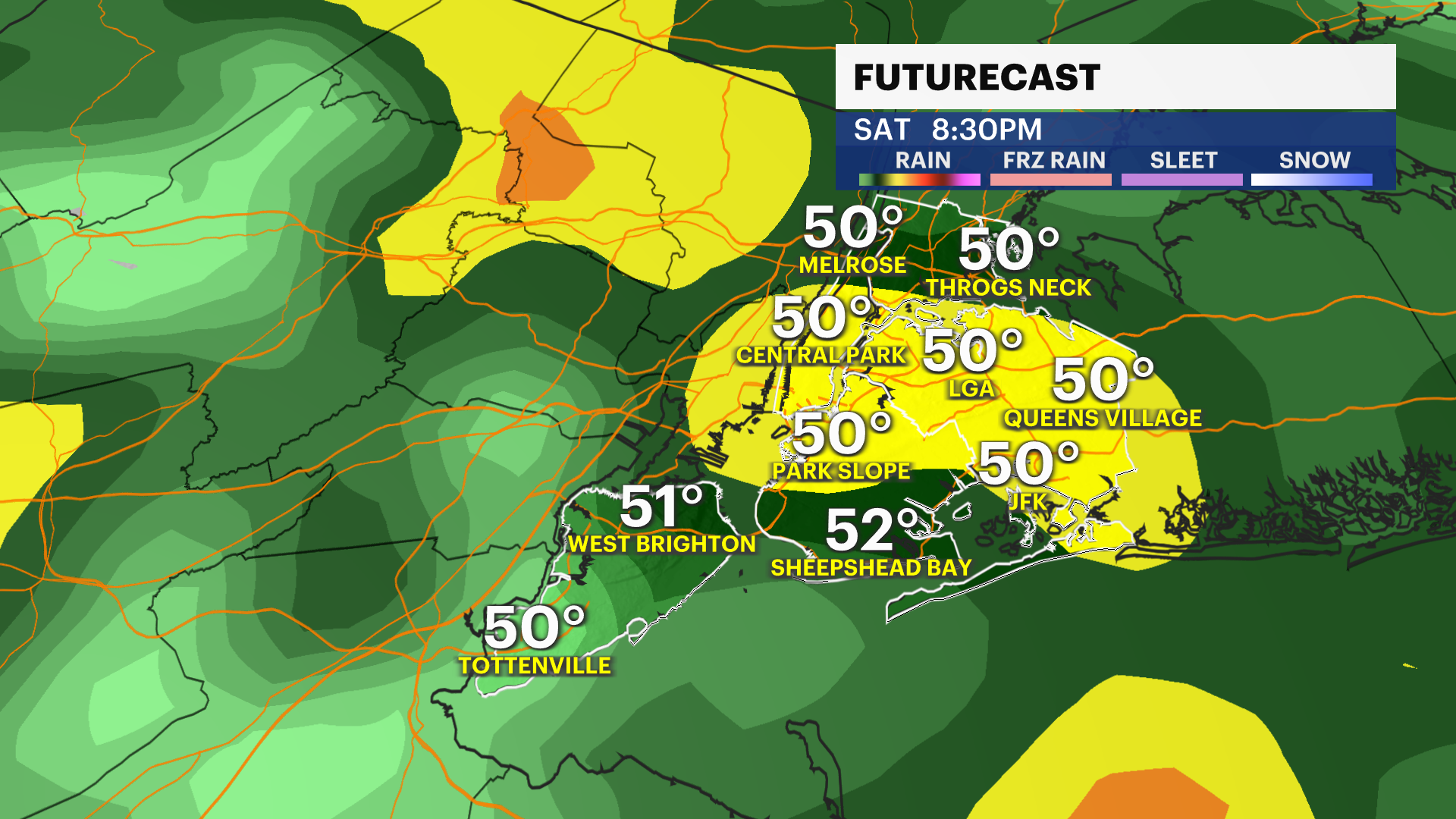 Saturday: Increasing clouds and chilly. PM steady rain. Temperatures rise overnight. Highs near 50. Lows near 47.