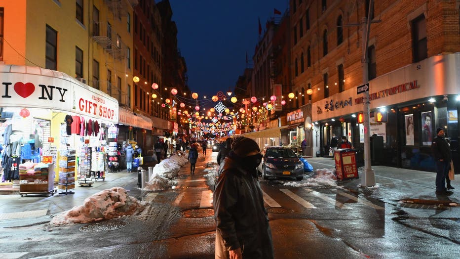 People walk through chinatown in New York City on February 11, 2021. (Photo by Angela Weiss / AFP) (Photo by ANGELA WEISS/AFP via Getty Images)