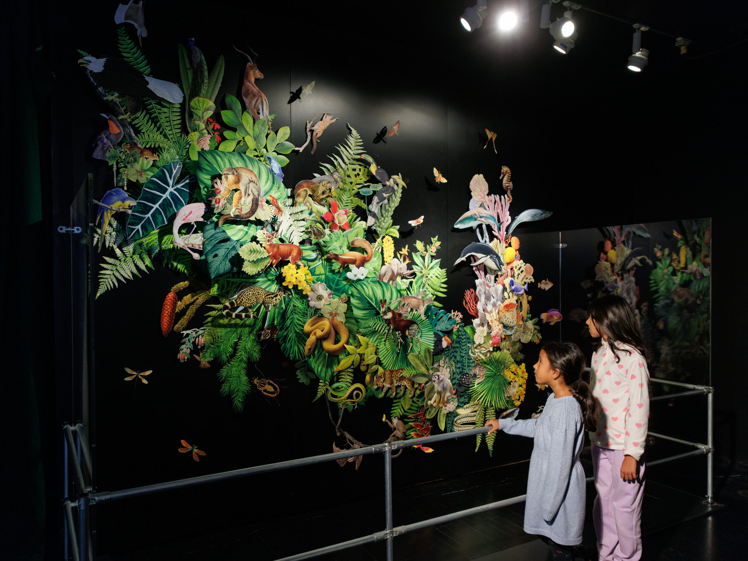 In the concluding Protecting Earth portion of the exhibit, video stories explore the many ways that conservation action can protect against biodiversity loss, including controlling introduced species, protecting habitats, and regulating industry. The final display in the exhibit, “Web of Life,” a collage by artist Clare Celeste Börsch, celebrates the beauty and diversity of life on Earth, while acknowledging the urgent reality of species loss.
