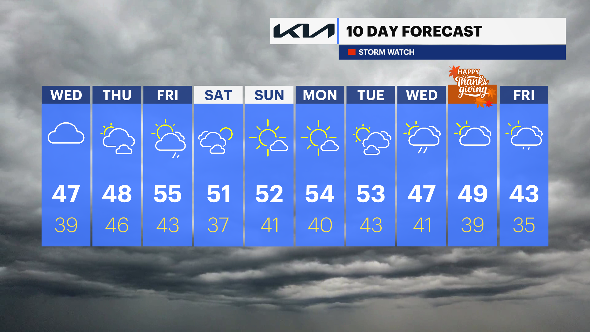 Temperatures will be similar through Thursday with a big climb Friday into the mid-50s. Rain returns for Friday potentially into early Saturday.