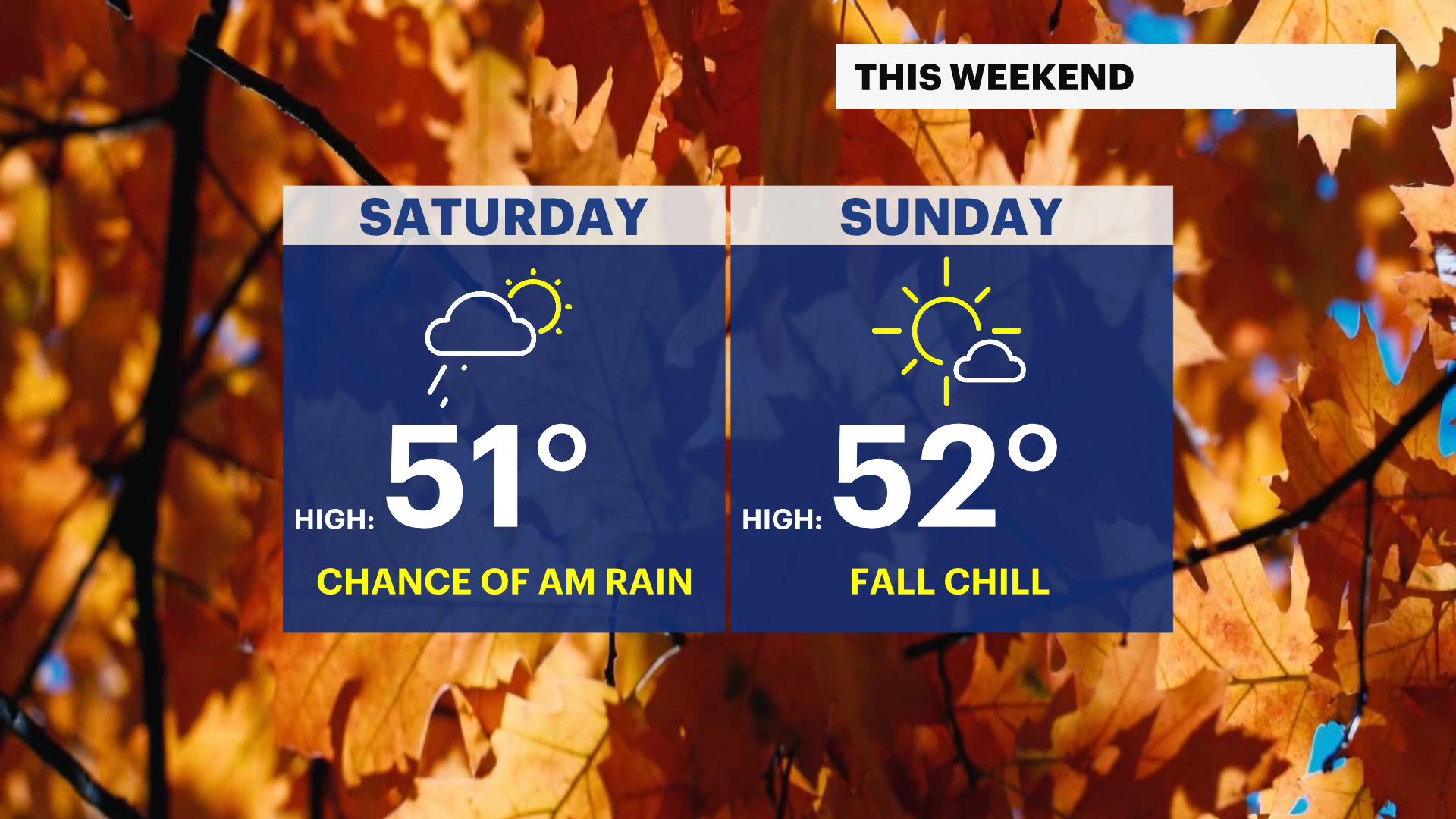 The weekend looks mainly dry with highs in the 50s with lots of sunshine. Weather conditions look milder with a chance of rain leading into the Thanksgiving holiday. Stay tuned for updates.