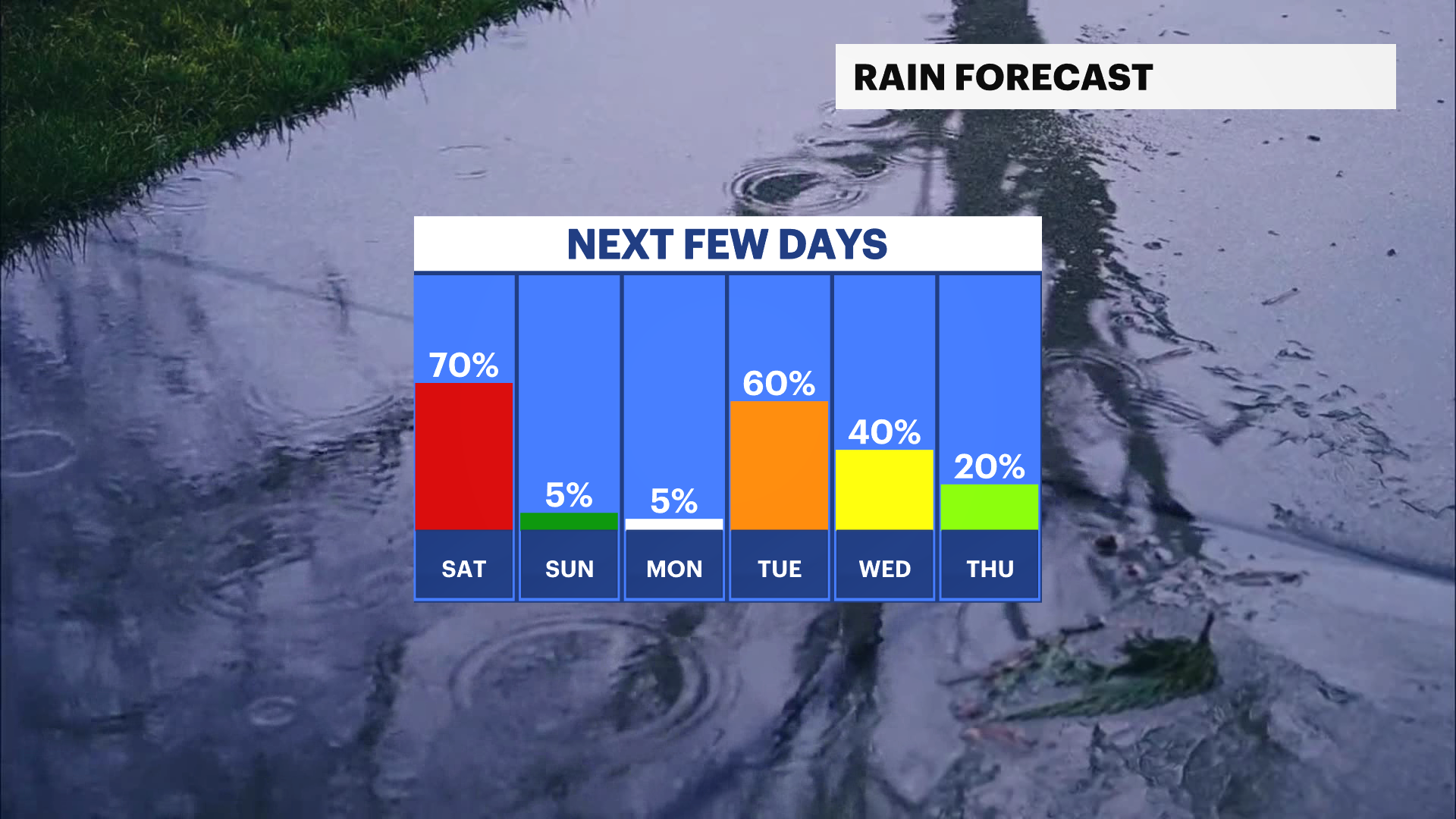 Beyond early Saturday rain, we are dry until Tuesday. While rain is possible on both Tuesday and Wednesday, the exact timing still needs to be ironed out.