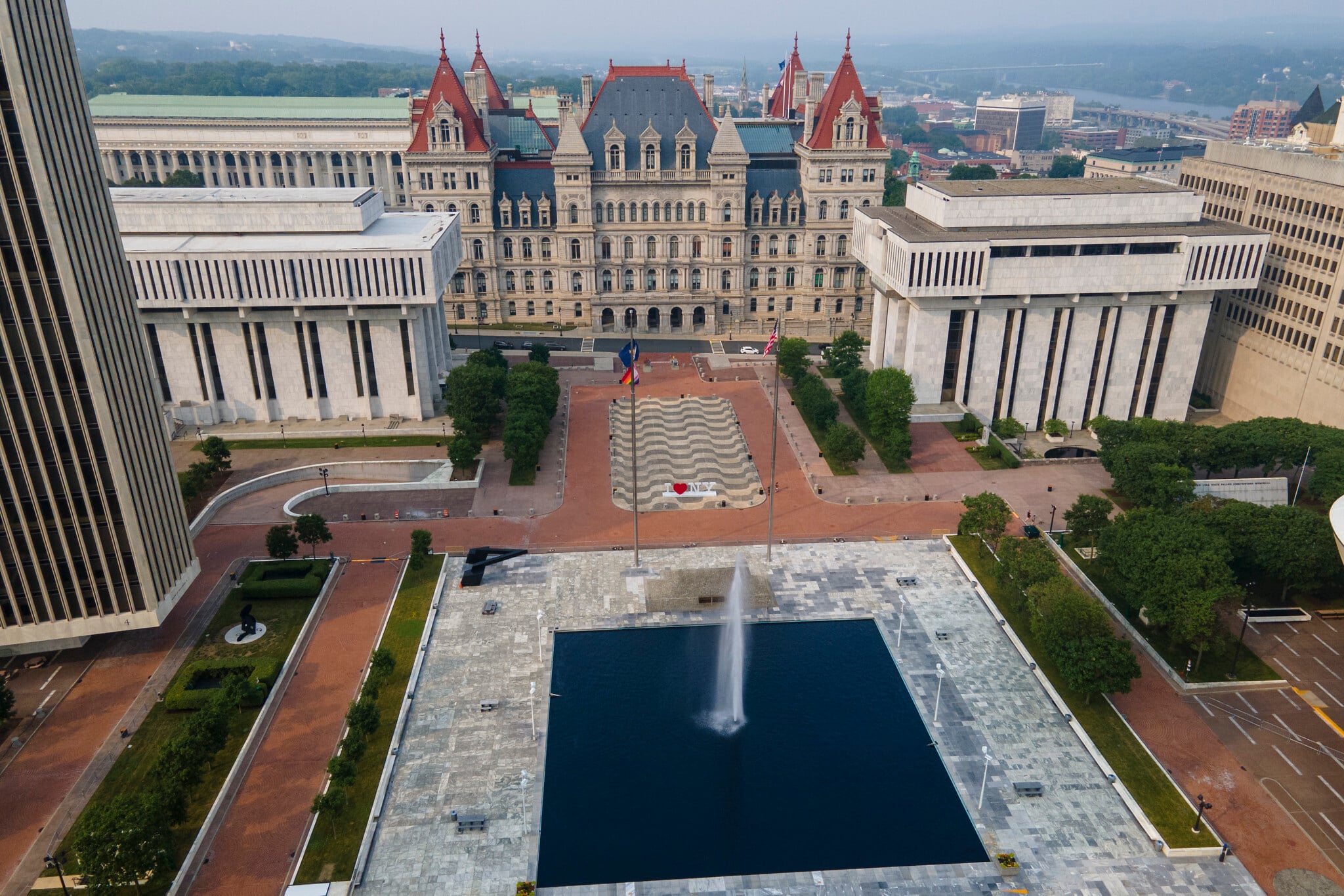 The Empire State Plaza is a centerpiece in Albany, surrounded by offices for government employees, the state Capitol, the New York State Museum and an iconic, bowl-shaped theater known as The Egg.