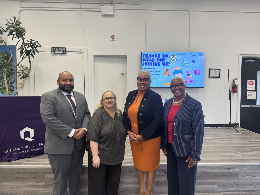 L to R: Acting HPD Commissioner Ahmed Tigani, JASA Program Director Fran Simon, QPL Digital Inclusion Site Coordinator Lydia Neely, and QPL Programs and Services Vice President Sharon Myrie.