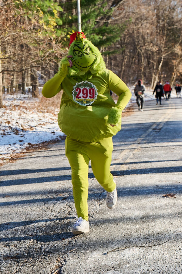 A runner in a Grinch costume at the 2024 Jingle Jangle 5K in Richmond Hill. Photo by Wil Pierce