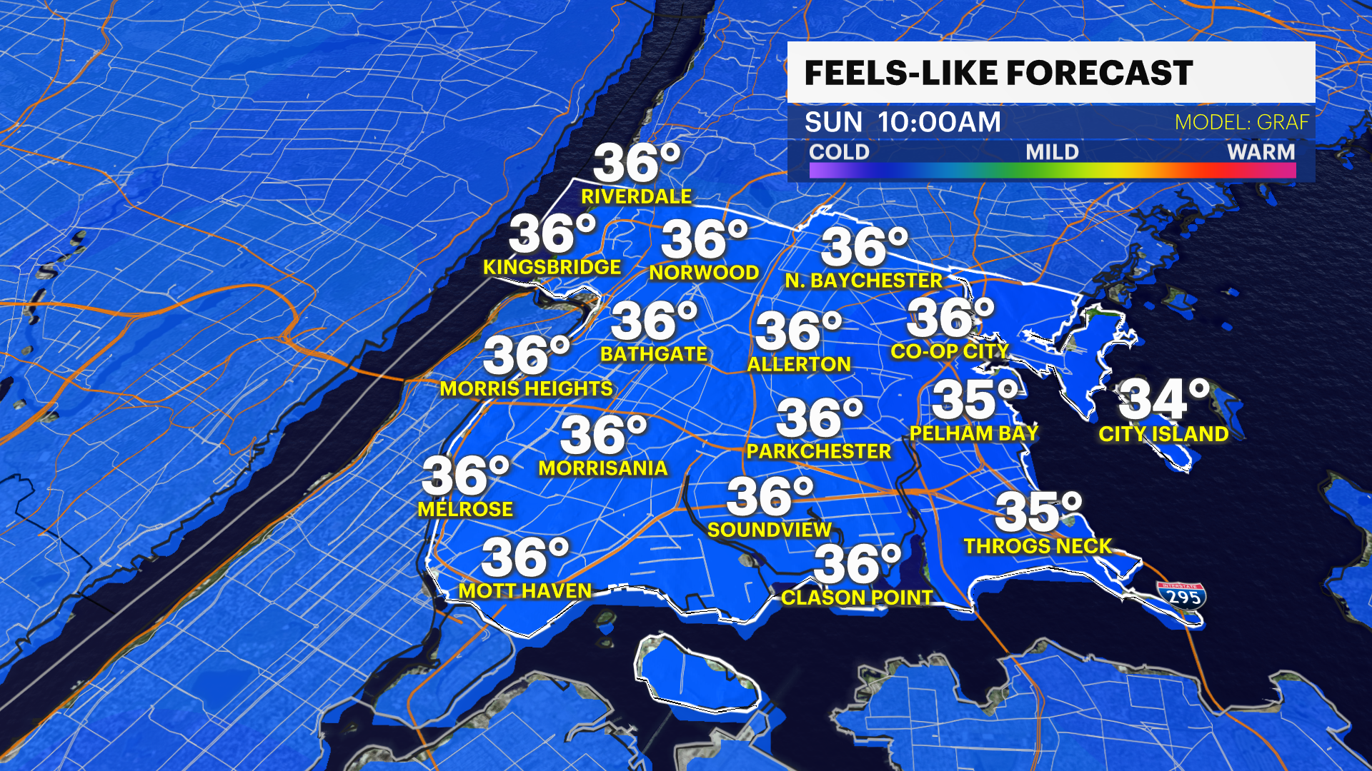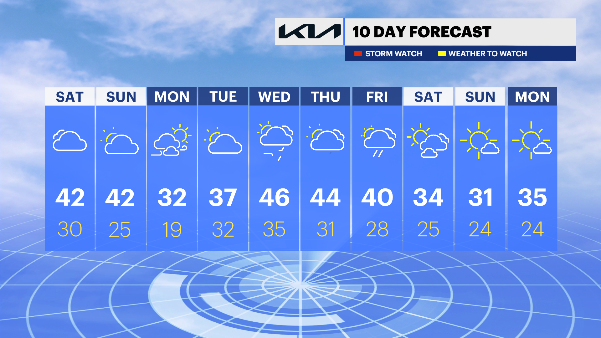The coldest morning of the week, with lows in the teens and wind chill values near 0F. Remaining chilly in the afternoon with increasing cloud cover and highs near 40.