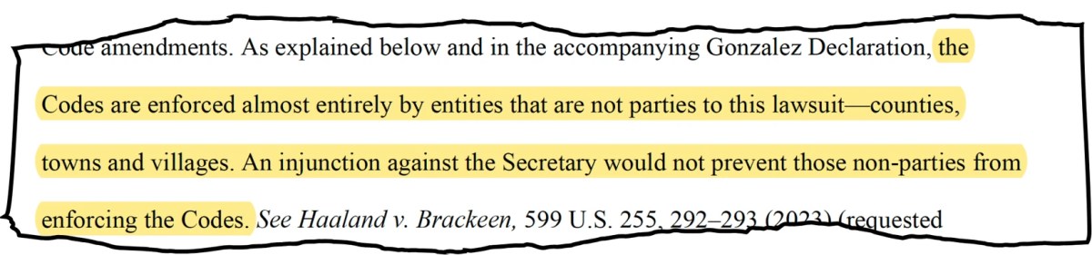 Once the new code is published, it’s up to local code enforcement officials — not the state — to enforce it. In other words, New York’s lawyers argued, it was too late for a court to force the state to block it.