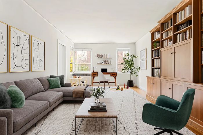 This one’s pretty. It’s an HDFC so bear that in mind, but if you’re eligible I’d try for this two-bedroom, 1.5-bath co-op on East 12th. The built-ins and the archways in the loftlike main living space are so appealing, and the windows face south. The kitchen is small but updated. There are two bedrooms, both on the smaller side and interior facing, but one of them has charming wood moulding and the other has a little arched built-in. There’s a bonus office or study, and the aforementioned 1.5 baths — both of which have been given a refresh. The building is beyond no frills — it’s a walkup — but there’s laundry in the basement and maintenance is manageable at $1,490. Also, the income restrictions here are sort of generous — the max take home for one person is $187,110 annually.
