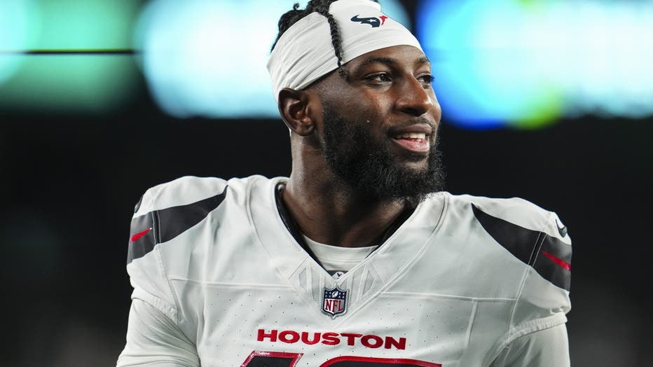 EAST RUTHERFORD, NJ – OCTOBER 31: Kris Boyd #17 of the Houston Texans walks across the field during an NFL football game against the New York Jets at MetLife Stadium on October 31, 2024 in East Rutherford, New Jersey. (Photo by Cooper Neill/Getty Ima