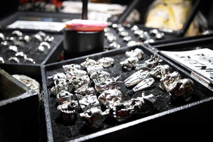 Among the vendors was a Brooklyn-born man known as Smelly, though he attests it’s not due to any body odor. Smelly started designing custom casts to make his own sterling silver jewelry, with a horror movie-inspired theme, and made his own business: Phantom Reengs. Many rings feature iconic characters such as the Wolfman, Frankenstein and even King Kong, though he still makes more traditional jewelry and even accepts commissions for custom pieces.