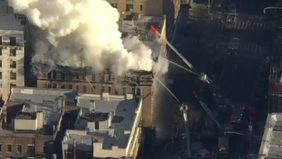 Officials say the fire began on the top floor of 201 West 107th Street, between Amsterdam Avenue, after a call came in at 8:20 a.m.