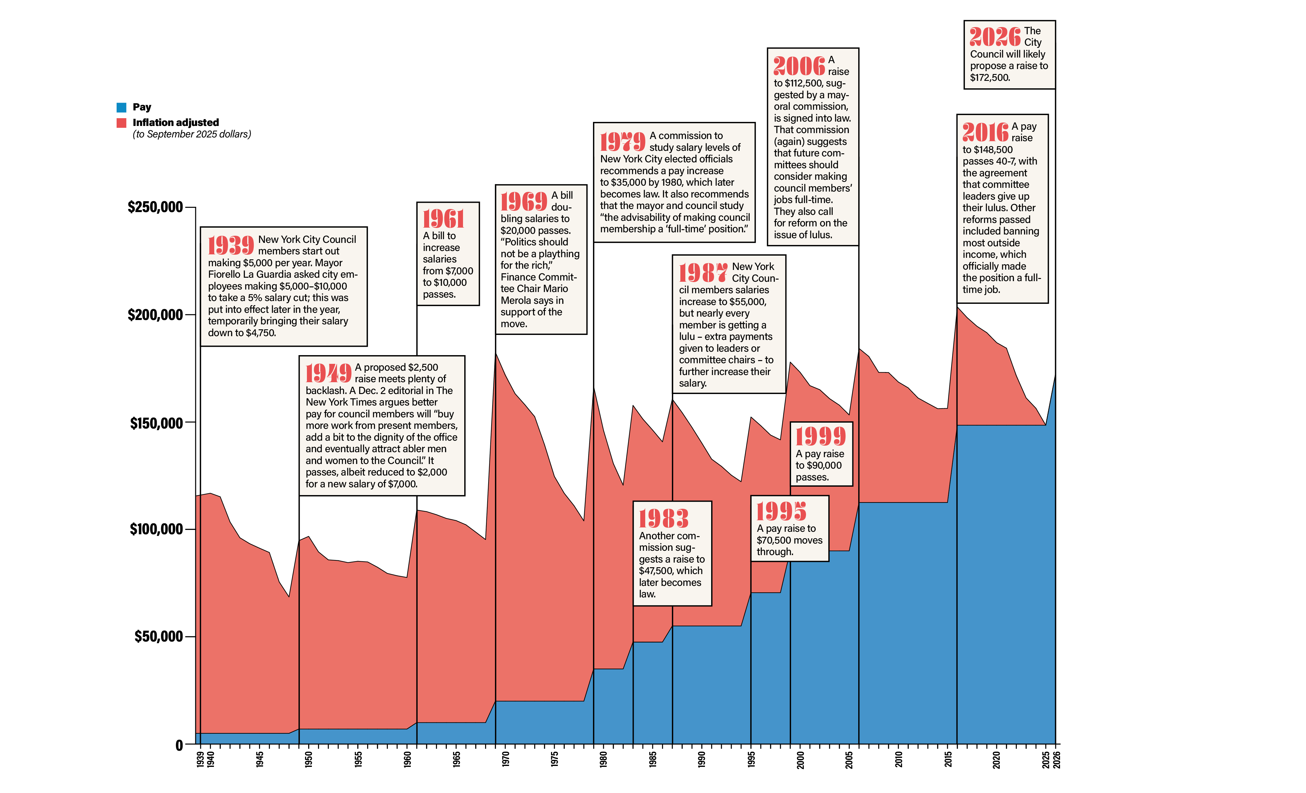 Here’s what City Council members have been paid in base salary since 1939, including in raw dollars and accounting for inflation.