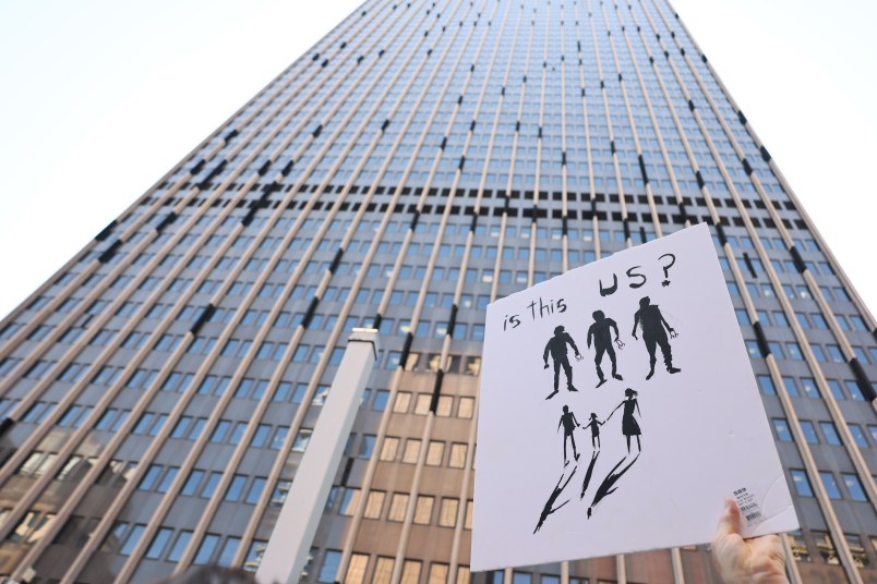 People protest Immigration and Customs Enforcement (ICE) outside of the Jacob K. Javitz Federal Building in New York City. (Photo by Michael M. Santiago/Getty Images)