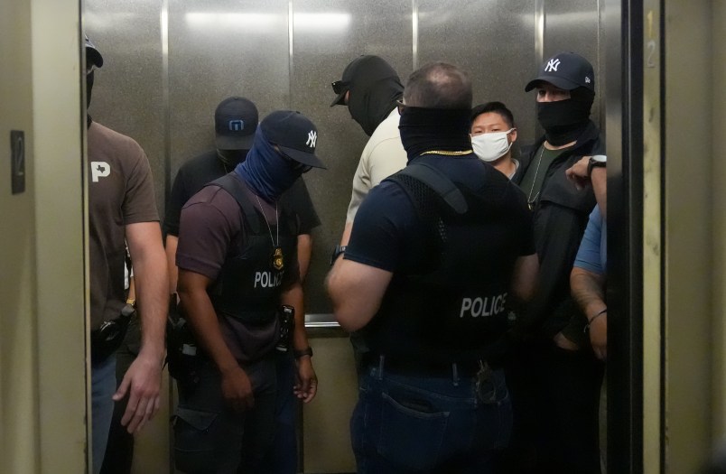 I explained that I was a reporter and pointed towards one of the agents, who was wearing a vest emblazoned with “IRS-CI,” which is the abbreviation for the tax agency’s criminal investigations unit. He was the only agent whose affiliation was identifiable. The Big Guy demanded to see my press pass.