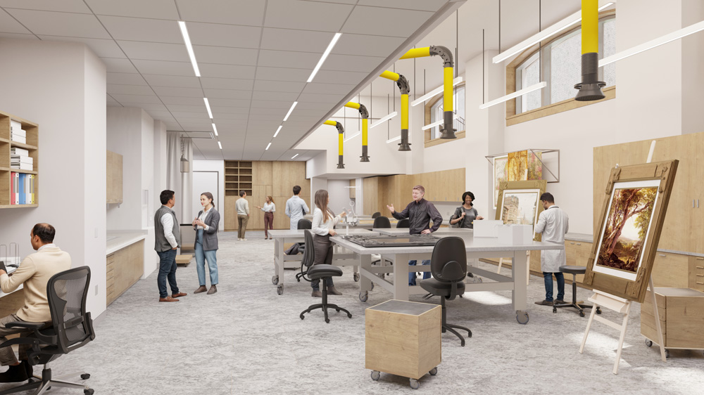 Rendering of the new, state-of-the-art conservation studio in The New York Historical’s Tang Wing for American Democracy, designed by RAMSA (Robert A.M. Stern Architects). Credit: RAMSA / Alden Studios