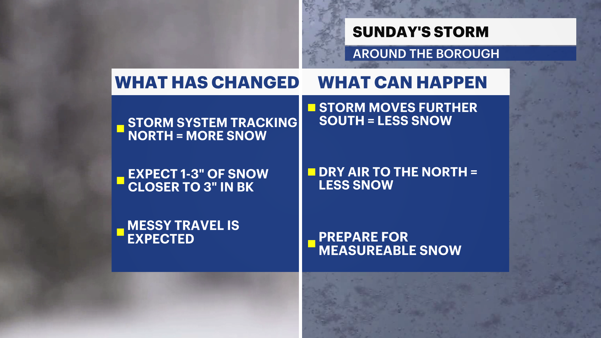 Our chances of seeing the first measurable snow of the season is growing. 1-3″ of snow is possible on Sunday. The storm will exit around Sunday morning with temperatures falling throughout the afternoon to the 20s.