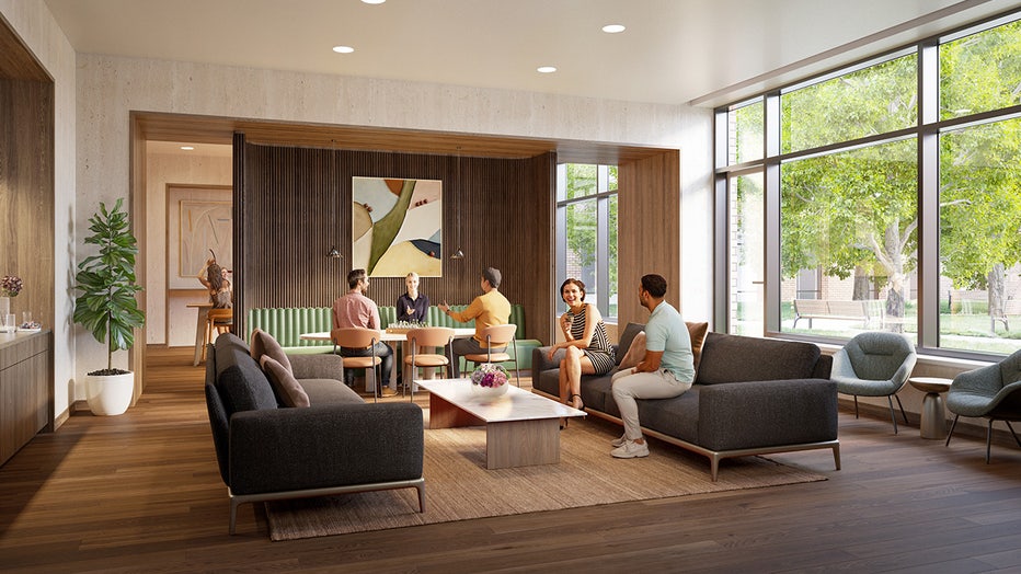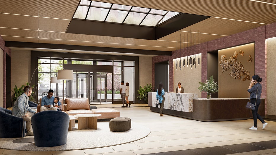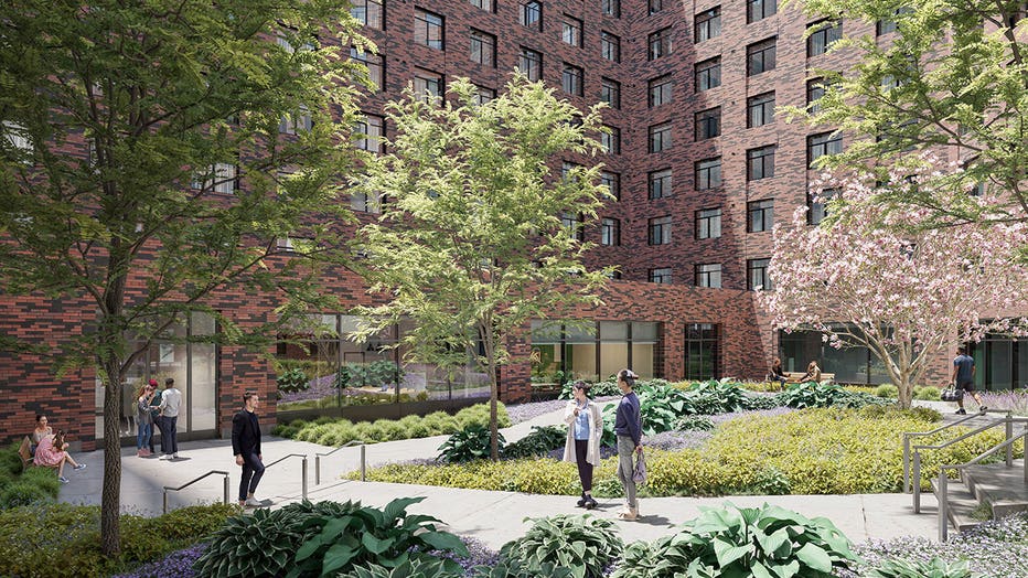 The buildings will open with a portion of the new public green space and include an array of resident amenities, such as landscaped courtyards, lounge areas, outdoor terraces and grilling stations, a community garden, fitness center, children’s playroom, co-working space and ground-floor retail.