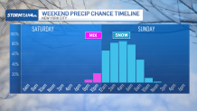 Many can expect to see precipitation start Saturday night, though it won’t turn over to rain until the overnight hours. How long will it stick around for?