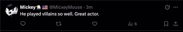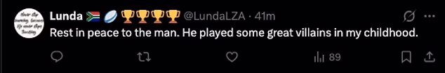 ‘Rest in peace to the man. He played some great villains in my childhood.’