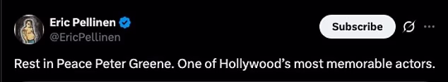 ‘Any time Peter Greene popped up, you just knew he was gonna play the scuzziest villain. Such a memorable character actor. RIP,’ another added.