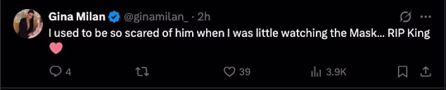 ‘I used to be so scared of him when I was little watching the Mask… RIP King.’