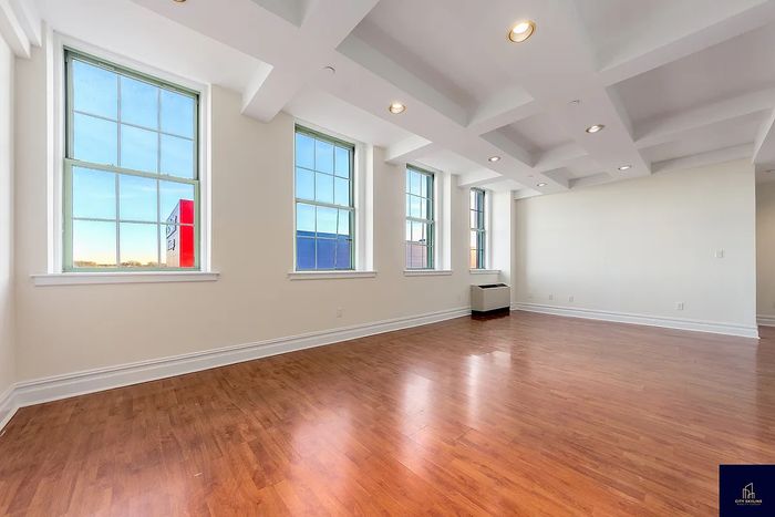 It’s a new build, but the windows and layout of this one-bedroom condo caught our attention. There are also a good number of closets and two balconies with western views. The interior is simple and not too time-stamped: wide-plank white-oak floors, blackened steel windows. The kitchen has oak cabinets and marble countertops. The appliances are Bertazzoni and Bosch. More walnut and bronze fixtures in the bathroom, which has a tub, rain showerhead, and a sort of subtle checkerboard floor. Common charges and taxes will come to about $1,000 a month, but it’s a new building, so there are some amenities: a rooftop garden, fitness center, package room, co-working space in the cellar, parking spots for purchase, and an elevator.