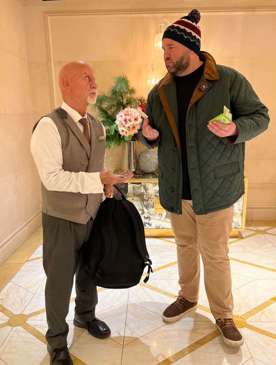 The hotel welcomes Wish Children throughout the holiday season to experience the “Home Alone” package. One child dreamt of being chased through the hotel by the Sticky Bandits. So, Daniel Brigano, the hotel’s guest experience director, and Benjamin Beraha, the food and beverage manager, dressed up as Harry and Marv and reenacted scenes in the lobby to make that wish come true.