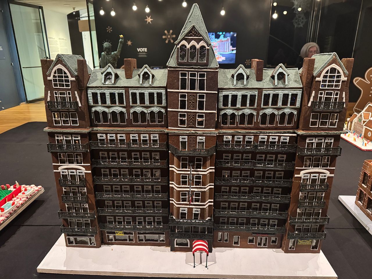 The theme of the competition remains “Iconic New York,” and this year’s display features 20 gingerbread structures spread throughout a gallery that smells as festive as it looks.