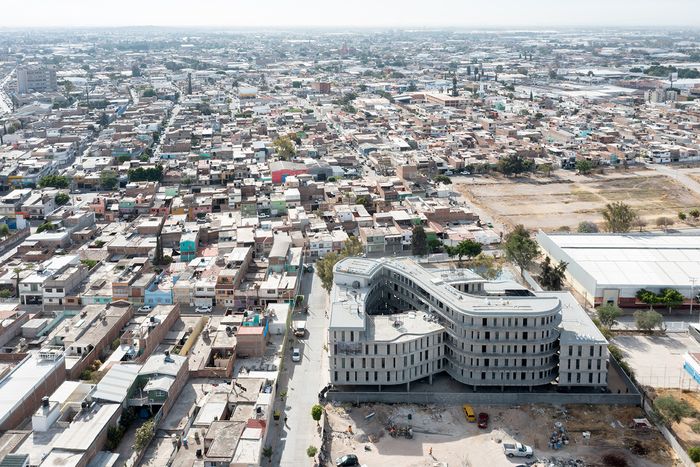 It’s not as if New York architects are ignorant of how to fashion pleasant places on a budget. The Brooklyn-based firm So-IL, which has lately been supplying fresh architecture for deep pockets, learned a lot from its 2021 Las Américas project in León, Mexico. Though it is huge compared to the huddle of ground-hugging boxes it faces across the street, it manages to create an enfolding ambience akin to Lillington Gardens. It’s not just social housing; it’s sociable housing. The keys are structural: The figure-eight form wraps two connected courtyards, and customized white concrete blocks fit together into walls that are ridged, shadowed, and curved. The design is meant to diffuse sunshine, mitigate heat, maximize breezes, and prompt conversations on landings, stairs, and outdoor hallways.