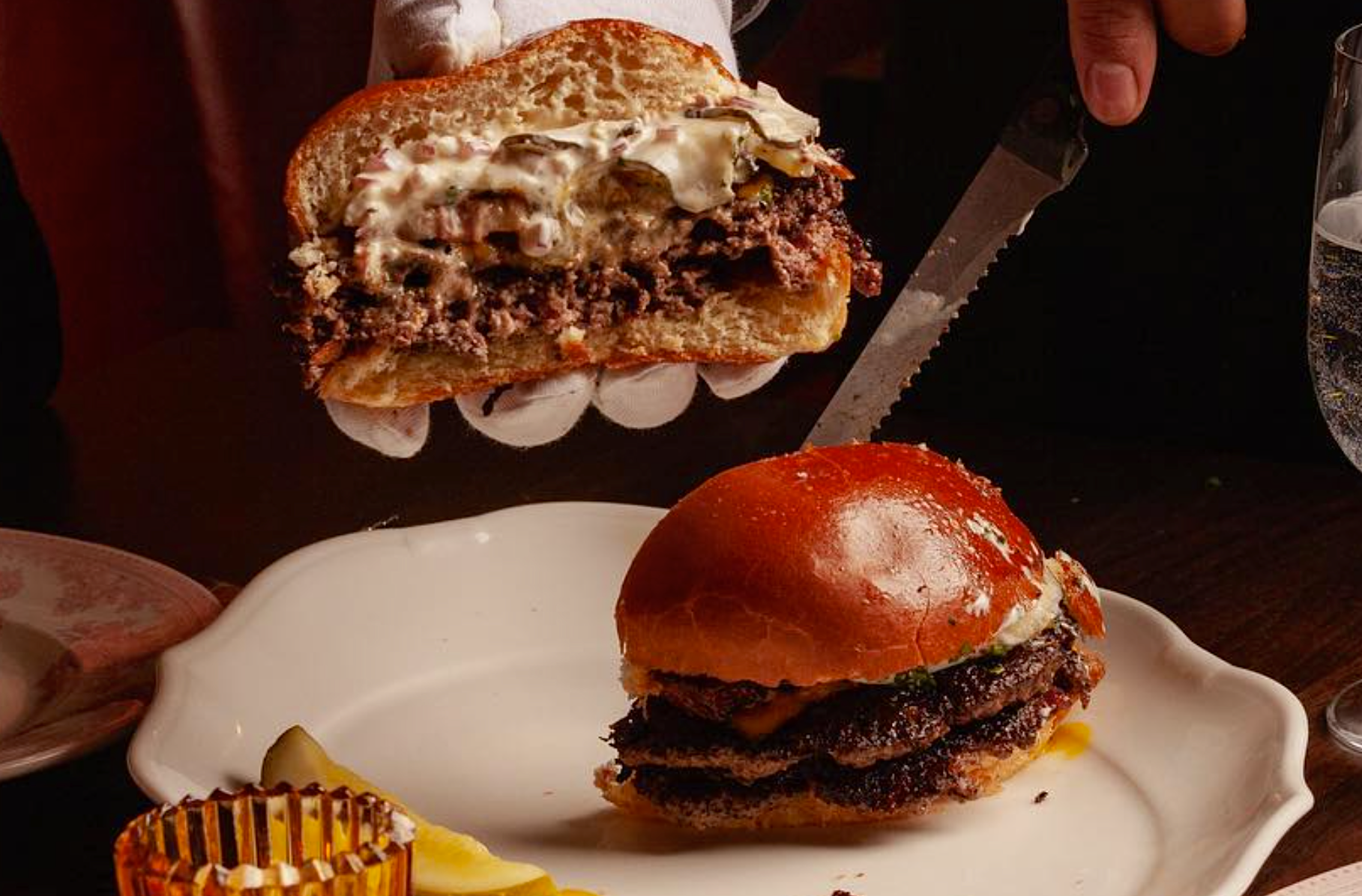 Sodikoff, best known for Chicago institutions like Au Cheval, has long been celebrated for elevating familiar American dishes into near-mythic status. At 4 Charles, that reputation rests squarely on two items. The prime rib, offered in cuts ranging up to the indulgent “King’s Cut,” is rich, deeply seasoned, and unapologetically old-school. Then there is the double Wagyu cheeseburger, often cited as one of the best burgers in America, with its griddled patties, molten cheese, and perfectly soft bun.