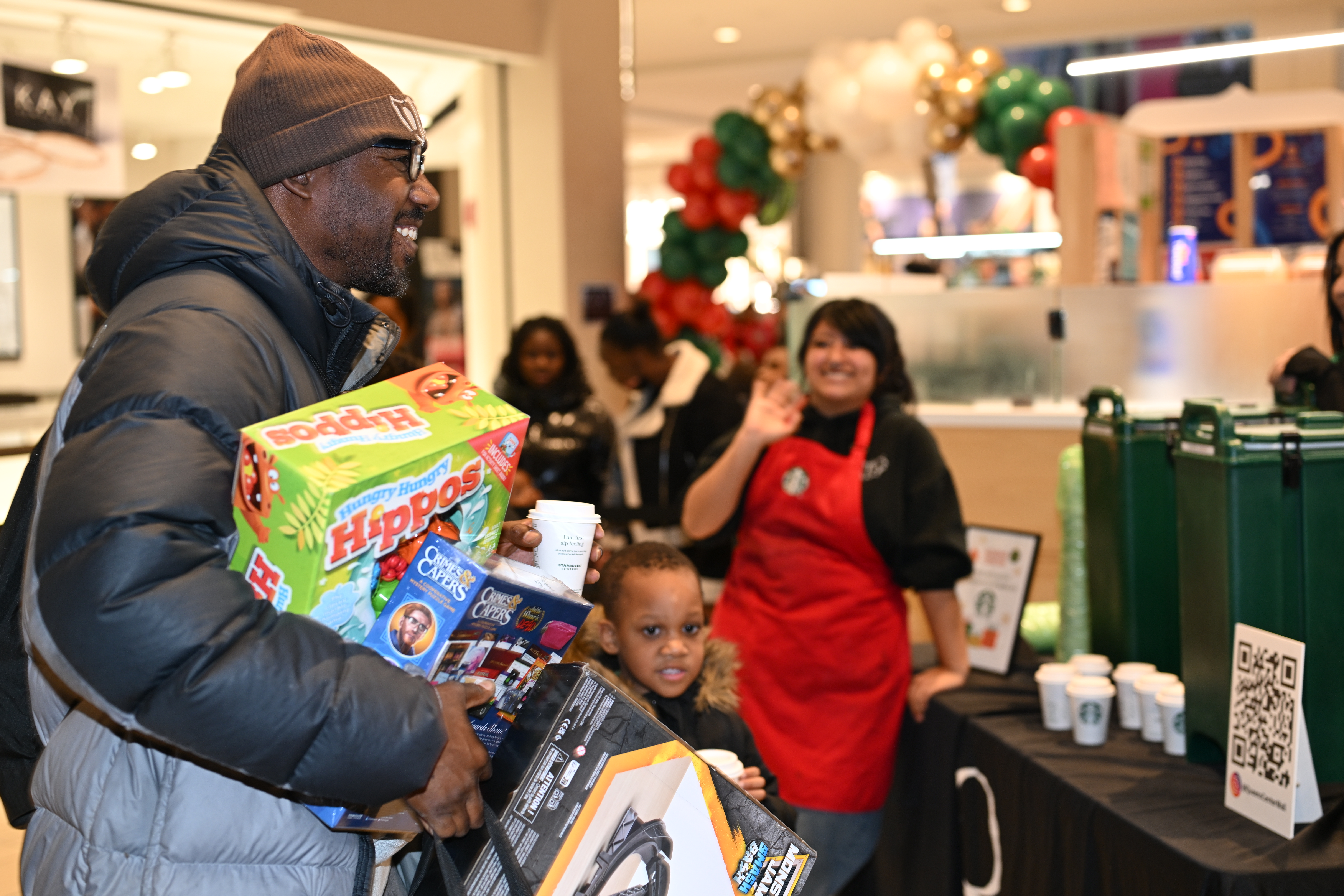 In addition to the toy giveaway, the event also featured music from DJ Your Honor, free hot cocoa from Starbucks and more.