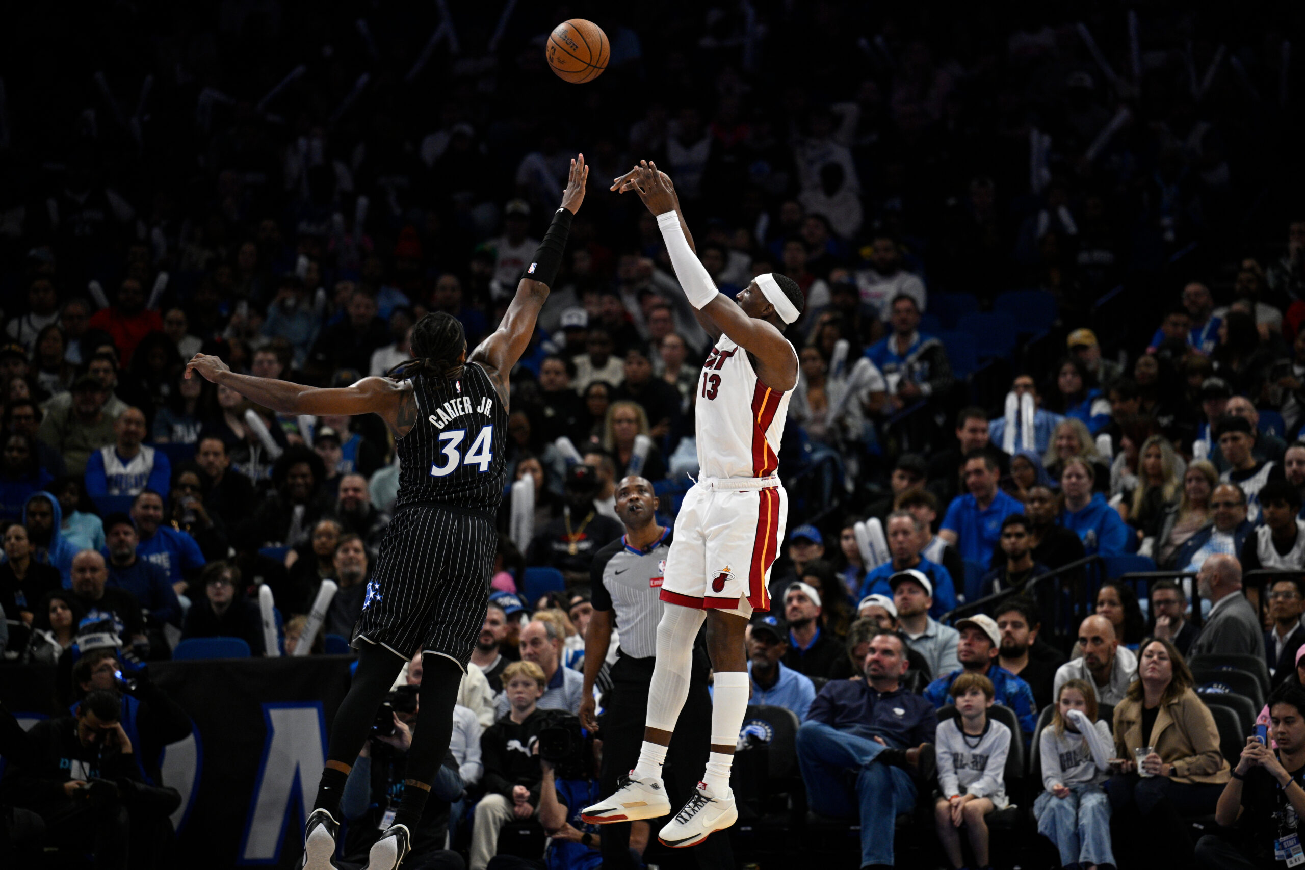 Bam Abedayo will try to shoot the slumping Heat back into the win column in Downtown Brooklyn on Thursday night. Photo: Phelan M. Ebenhack/AP