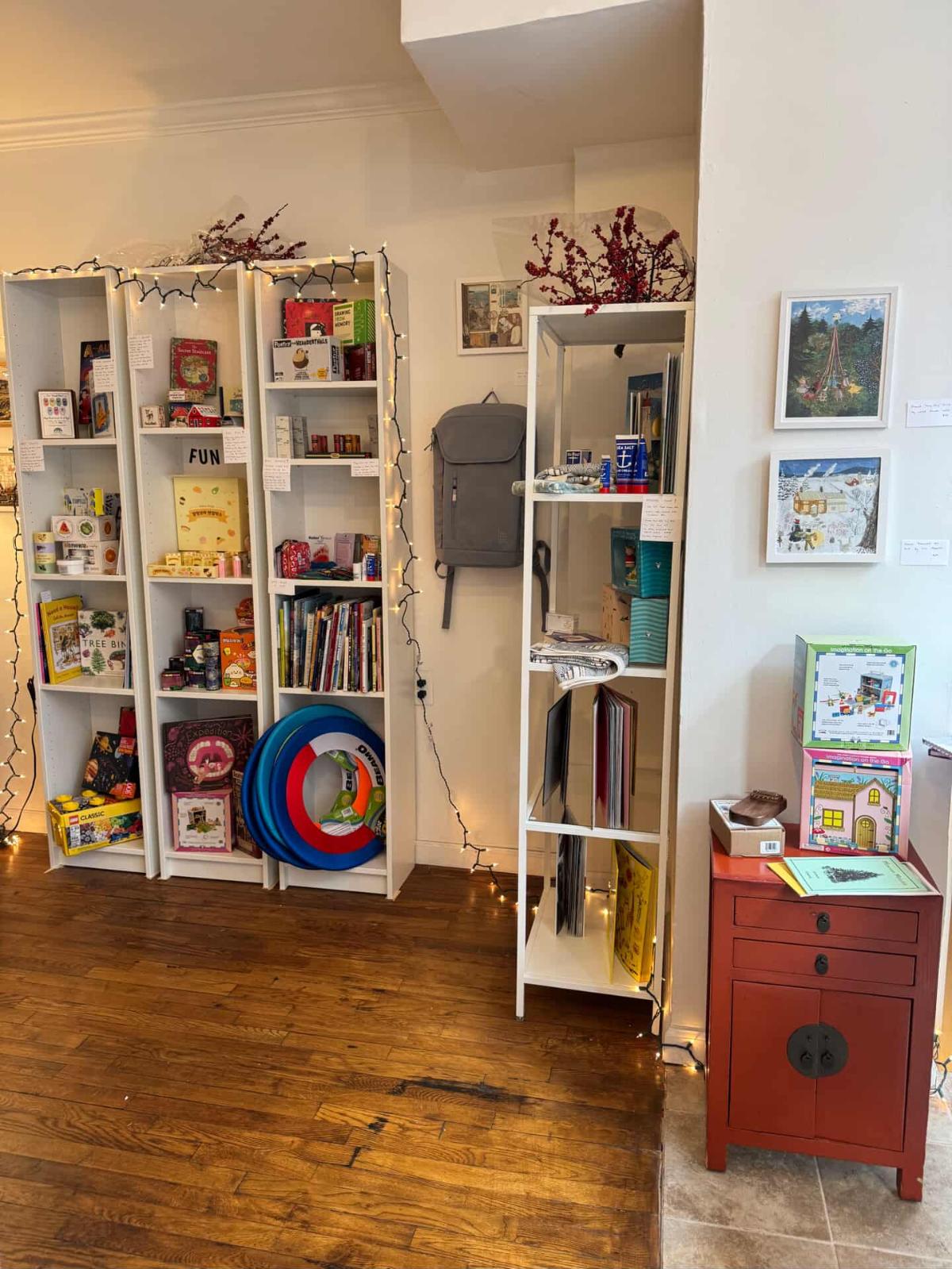 The shop carries children’s books, toys, housewares, blankets, small gifts, and even a few edible treats. There are also practical city-centric items — things for sore feet, dog supplies, and everyday essentials — all selected with care. Many of the products are made with environmental consciousness in mind, though YiLing admits not everything is strictly curated by ethos alone. “Some things are pure pandering,” she joked, noting her kids’ love of certain toys.