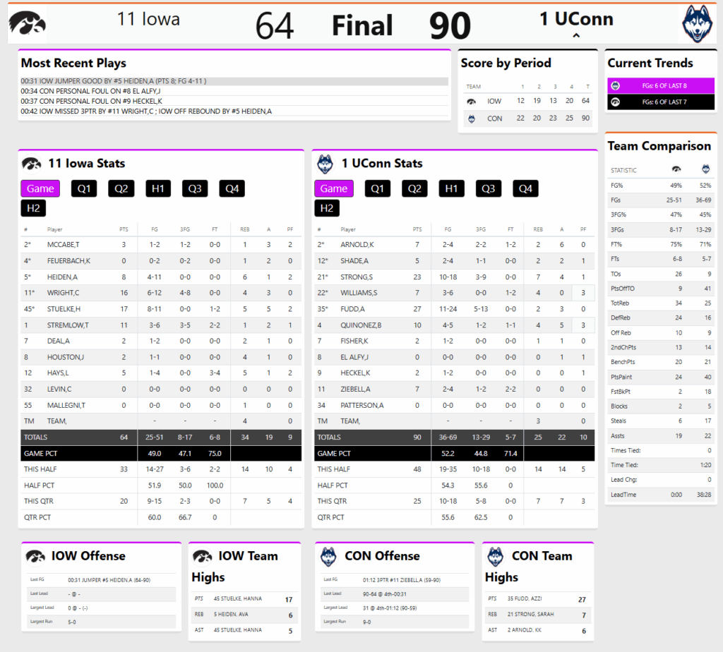 BOX SCORE: #1 UCONN 90 #11 IOWA 64