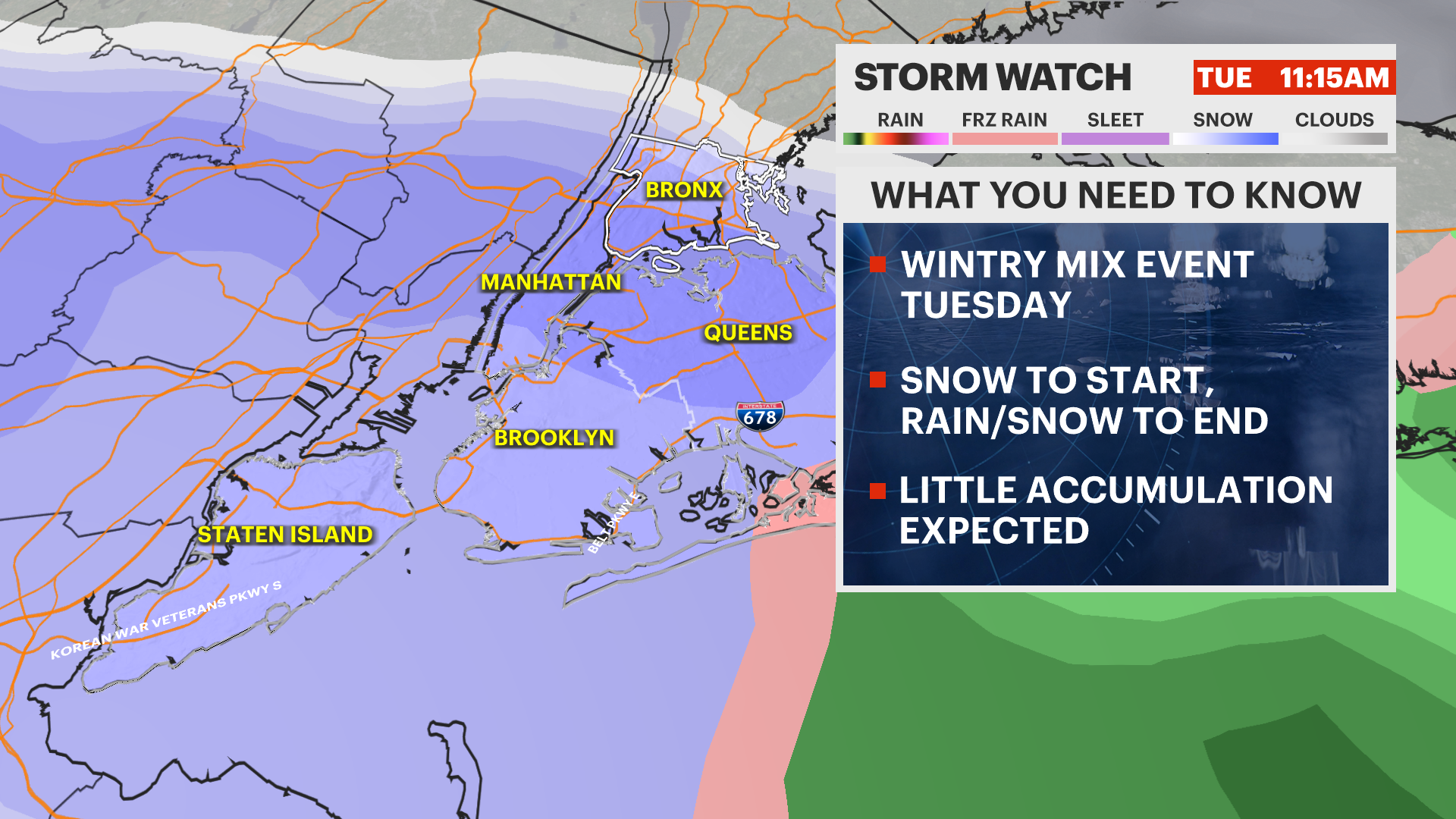 A colder stretch starts tonight and carries into the week, with quiet weather at first before a brief wintry mix transitions to rain by Tuesday.