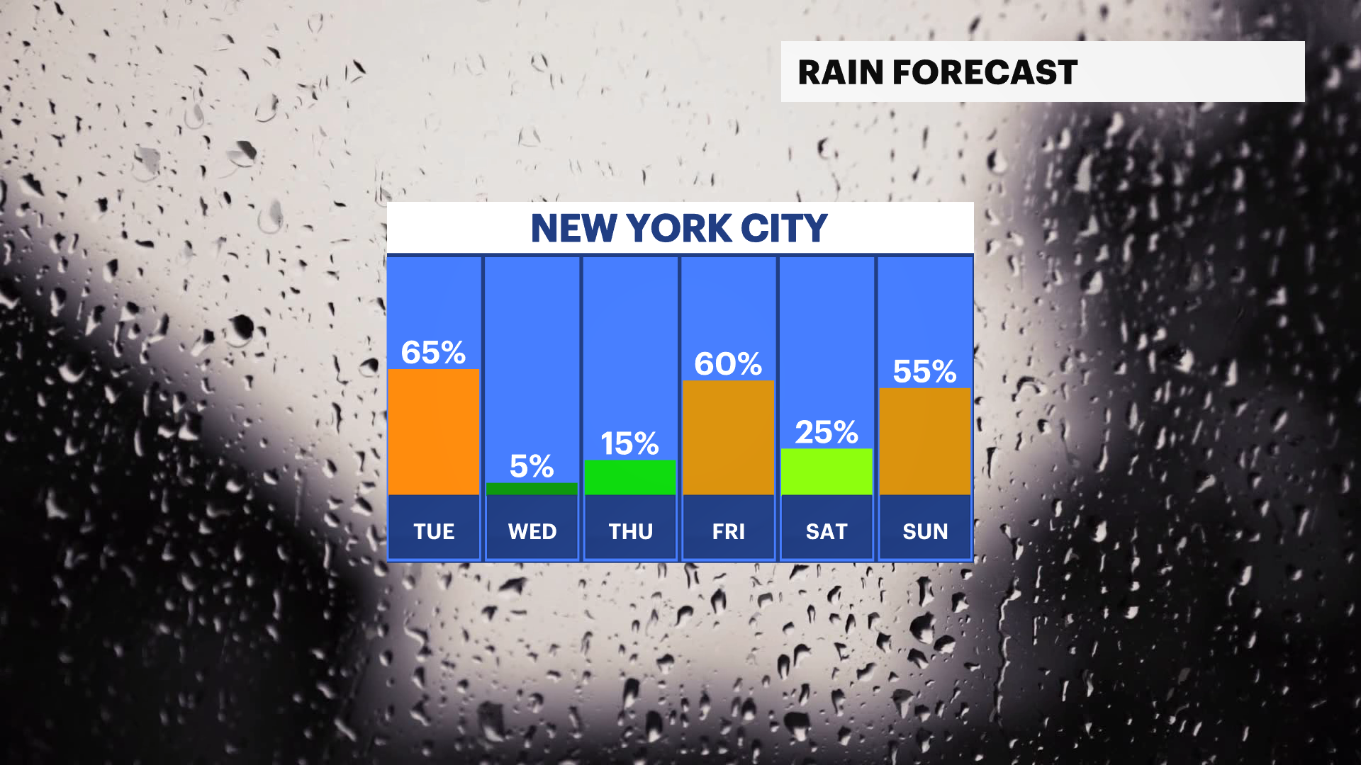 Friday: Chance of rain. Cloudy and mild. Colder at night. Highs near 50. Lows near 35.