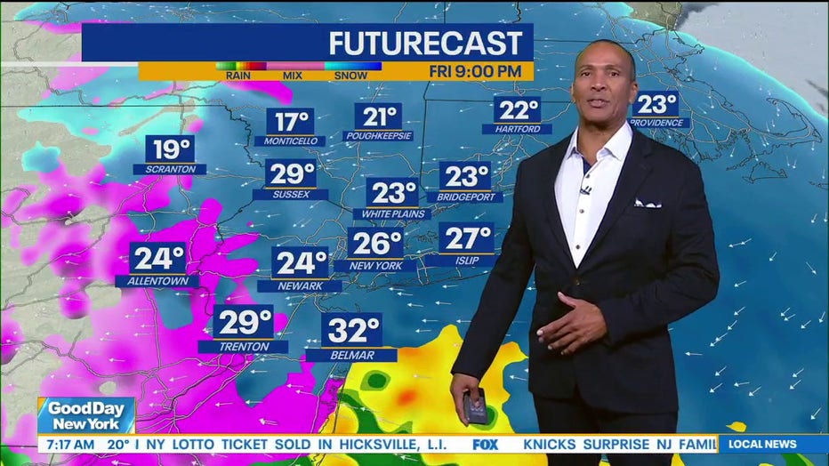 A quick but impactful shot of snow and ice will blast through the Northeast Friday into early Saturday. FOX 5 NY’s meteorologist Mike Woods has the latest.