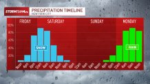 The second system moving through over the weekend, the Sunday evening rain event, will melt some of the snow on the ground and could cause isolated flooding and travel headaches into Monday.